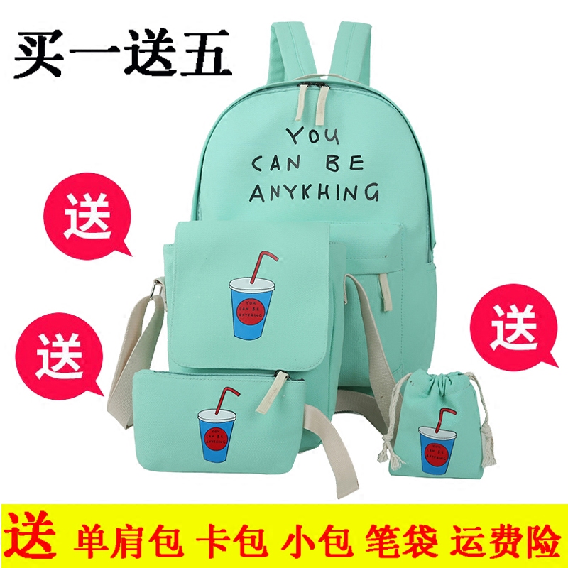 学院风简约日韩版潮帆布女中学生书包双肩包女背包高中大容量旅行