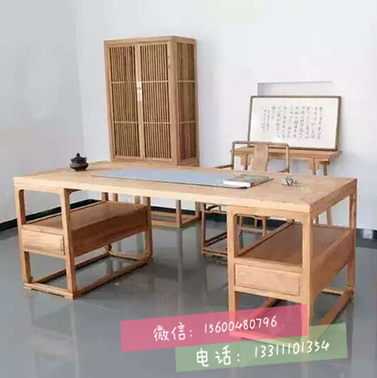 新中式免漆老榆木禅意实木茶书法画电脑办公餐桌案几圈椅特价家具