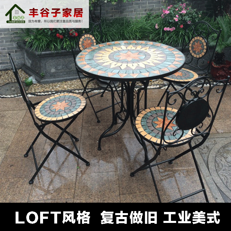 马赛克风格铁艺桌椅阳台庭院户外室内桌椅组合咖啡厅酒吧休闲茶几