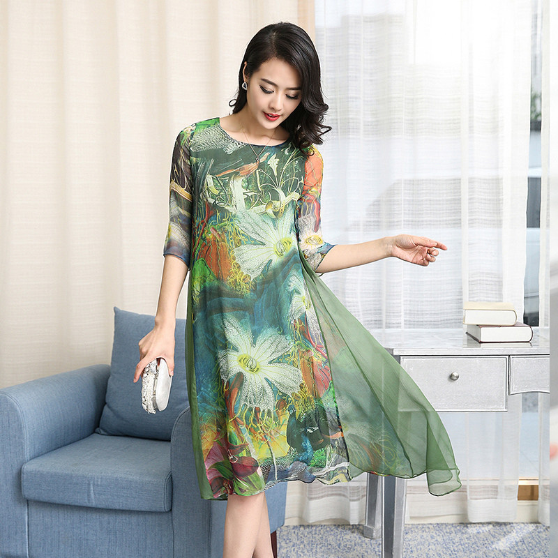 时尚2016正品真丝正品女装桑蚕丝新款甘甘的世界夏季连衣裙熙然