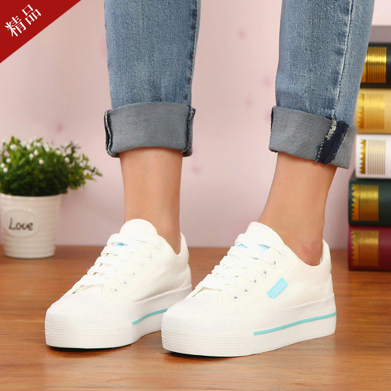 远波春秋新款女士帆布鞋厚底松糕女鞋小白色韩版高中学生休闲布鞋