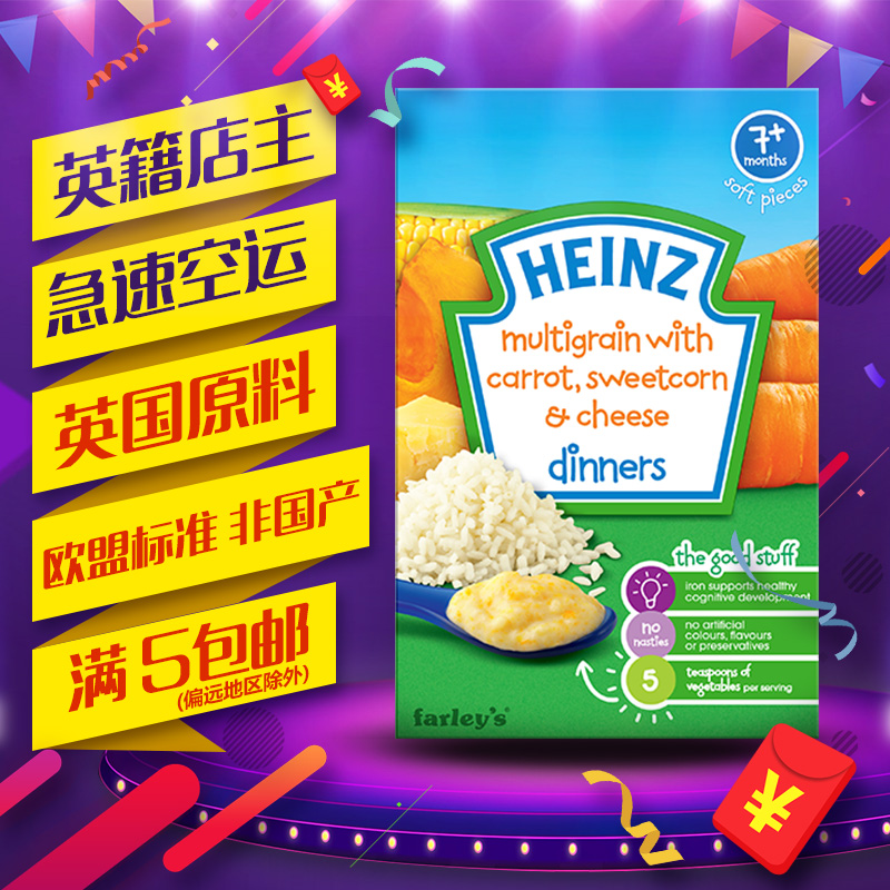 英国代购亨氏7个月胡萝卜蔬菜芝士婴儿米粉米糊高铁多谷物晚餐